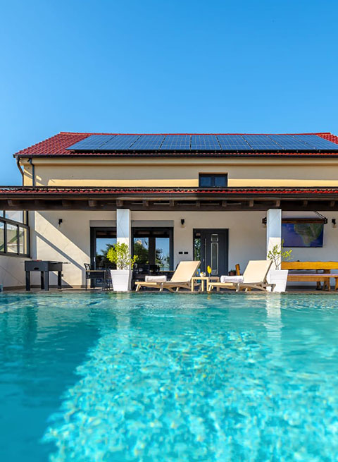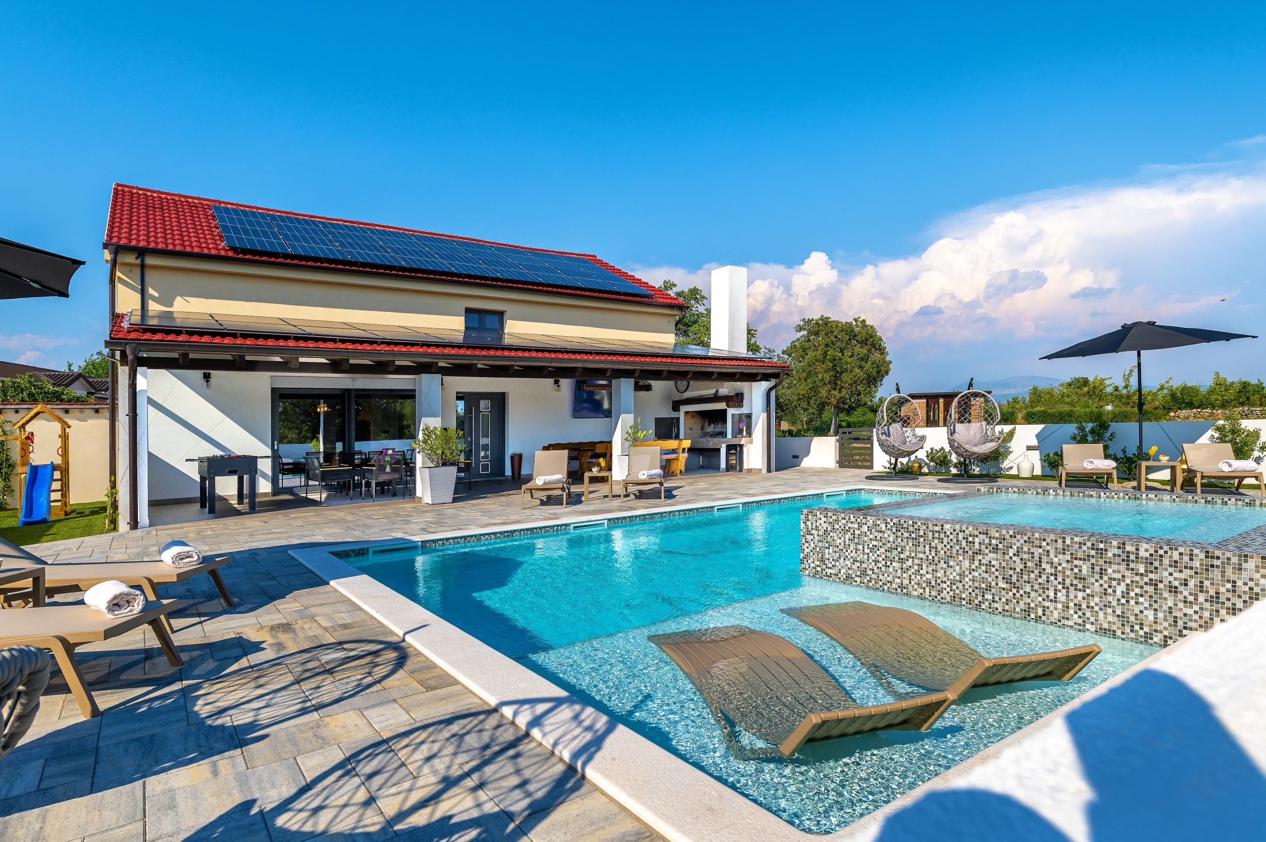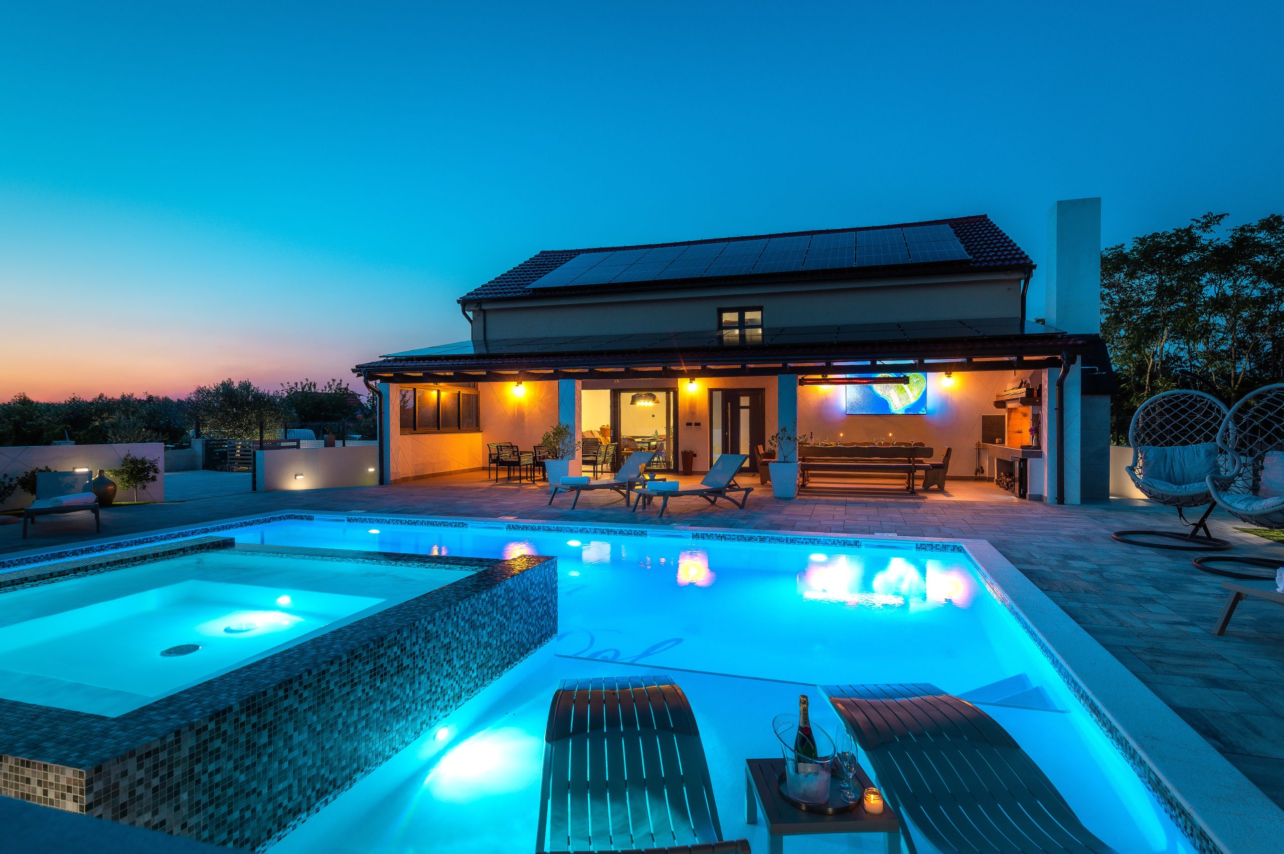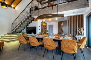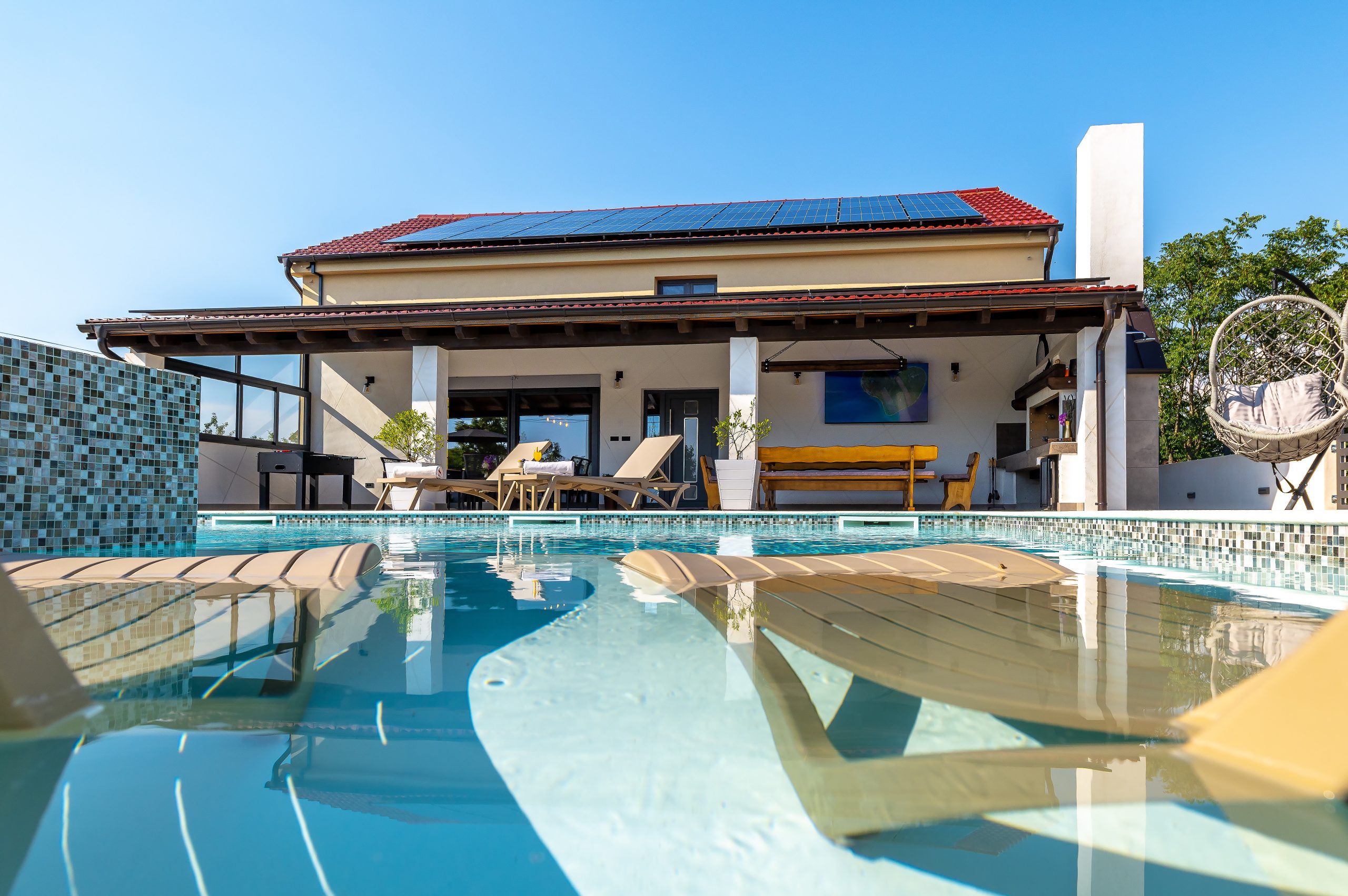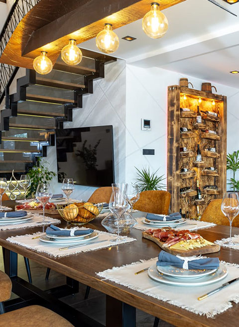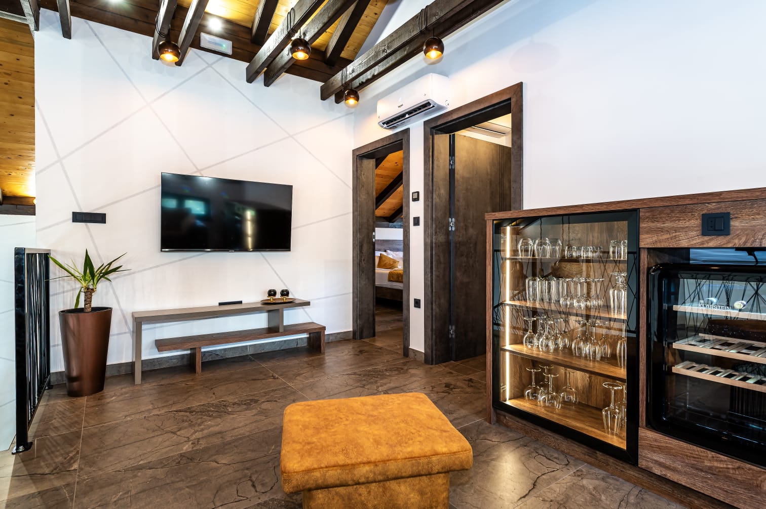 Elegant lodging located on a 1520 square meter fenced private property surrounded by pristine nature, Villa Meden Dol provides complete seclusion and the ideal fusion of modern and traditional design. Exclusively for you, Villa Meden Dol provides comfortably sleeping 8+1 people (4 bedrooms, 4.5 bathrooms), two Finnish saunas, a heated 58-square-meter private pool with a jacuzzi, a table soccer area, a playground, a PlayStation 5.